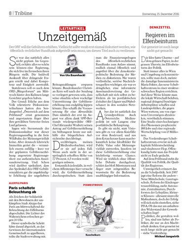 Der ORF will die Gebühren erhöhen. Vielleicht sollte vorab erst einmal diskutiert werden, wie öffentlich-rechtlicher Rundfunk aufgestellt sein muss, um diesen Titel auch zu verdienen.