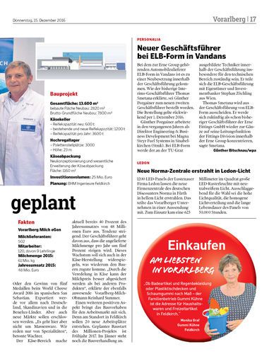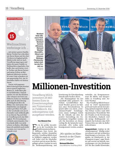 Vorarlberg Milch investiert 25 Millionen Euro in Erweiterungsbau am Firmenareal in Feldkirch. Käsekompetenz soll ausgebaut werden.