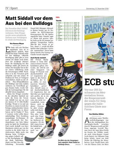 Der Kanadier Matt Siddall (32) muss die Bulldogs verlassen. Dem Winger wurde seine anhaltende Unform zum Verhängnis. Er erhält die Kündigung.