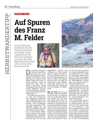 Die Geschichtenerzählerin Hertha Glück kennt Wege und Stege. Heute empfiehlt sie den Weg von Schoppernau, über die Villa Maud nach Bad Hopfreben im hinteren Bregenzerwald.