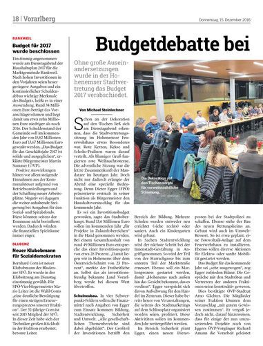 Ohne große Auseinandersetzungen wurde in der Hohenemser Stadtvertretung das Budget 2017 verabschiedet.