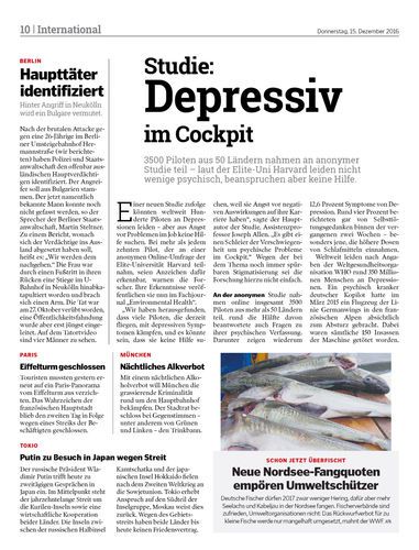 3500 Piloten aus 50 Ländern nahmen an anonymer Studie teil – laut der Elite-Uni Harvard leiden nicht wenige psychisch, beanspruchen aber keine Hilfe.