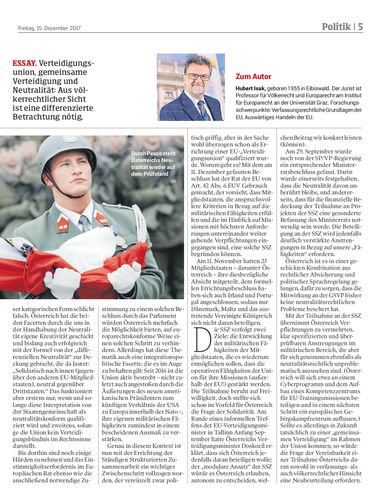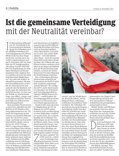 ESSAY. Verteidigungsunion, gemeinsame Verteidigung und Neutralität: Aus völkerrechtlicher Sicht ist eine differenzierte Betrachtung nötig.