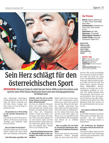Mensur Suljovic zählt bei der Darts-WM zu den Favoriten und spricht über Phil Taylor, Benjamin Karl und sein Erfolgsgeheimnis. Von Michael Lorber