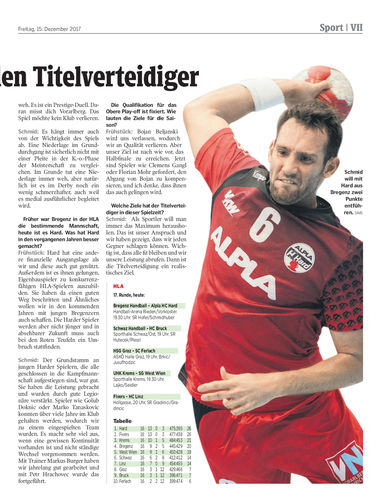 Derbytime im Ländle. Bregenz empfängt heute (19.30 Uhr) Hard. Die beiden Kapitäne Lukas Frühstück und Dominik Schmid geben vor dem Duell ihre Einschätzungen ab.