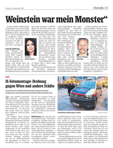 Auch Salma Hayek ist von Weinstein attackiert worden und berichtet nun. Morgan Spurlock bekennt: „Ich bin Teil des Problems.“