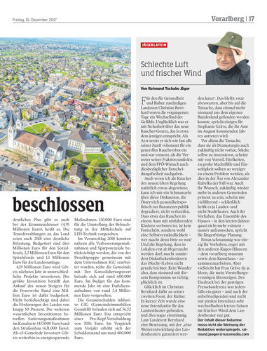 Über 32 Millionen Euro beträgt der Haushaltsvoranschlag 2018 der Marktgemeinde Götzis.