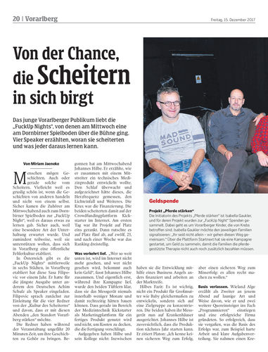 Das junge Vorarlberger Publikum liebt die „FuckUp Nights“, von denen am Mittwoch eine am Dornbirner Spielboden über die Bühne ging. Vier Speaker erzählten, woran sie scheiterten und was jeder daraus lernen kann.