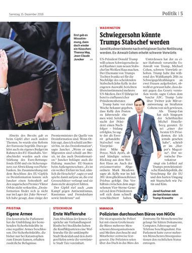 Jared Kushner könnte nach erfolgloser Suche Notlösung werden. Ex-Anwalt Cohen erhebt schwere Vorwürfe.