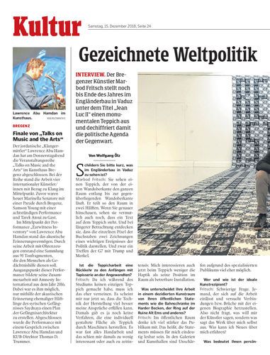 Interview. Der Bregenzer Künstler Marbod Fritsch stellt noch bis Ende des Jahres im Engländerbau in Vaduz unter dem Titel „Jean Luc II“ einen monumentalen Teppich aus und dechiffriert damit die politische Agenda der Gegenwart.