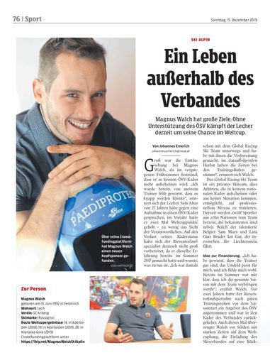 Magnus Walch hat große Ziele. Ohne Unterstützung des ÖSV kämpft der Lecher derzeit um seine Chance im Weltcup.