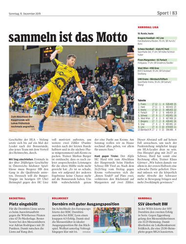 Sportlich bietet die 18. Runde der HLA wenig Spannung. Bregenz empfängt (19) Linz. Hard tritt in Schwaz an – Siege sollen her.