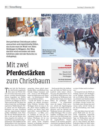 Den perfekten Christbaum selbst aussuchen und eigenhändig fällen, das kann man im Wald von Alois Heidegger in Möggers. Der Weg dorthin wird entweder mit dem Schlitten oder mit der Kutsche zurückgelegt.