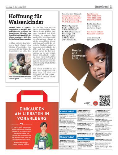 Adventgespräche. Marina Moosbrugger aus Schoppernau ist Krankenhausseelsorgerin im LKH Rankweil und im Dornbirner Stadtspital. Die 27-Jährige hilft den Patienten, indem sie da ist und mit ihnen spricht. Egal, worüber. Seiten 22/23 Dietmar Stiplovsek