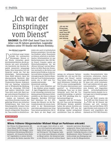 Wiens früherer Bürgermeister Michael Häupl an Parkinson erkrankt