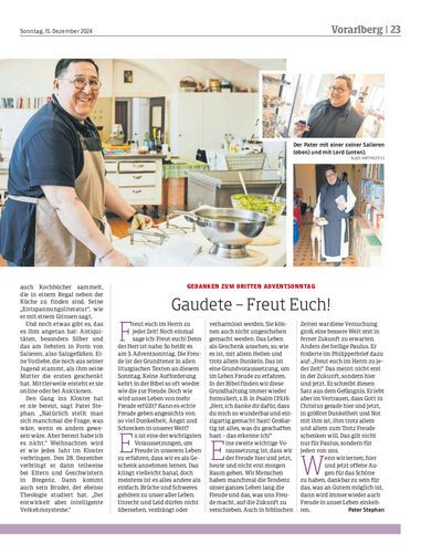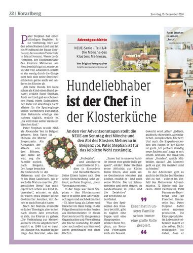 An den vier Adventsonntagen stellt die NEUE am Sonntag drei Mönche und den Abt des Klosters Mehrerau in Bregenz vor. Pater Stephan ist für das leibliche Wohl zuständig.