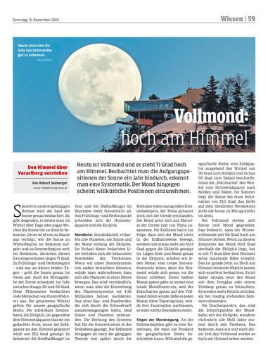 Heute ist Vollmond und er steht 71 Grad hoch am Himmel. Beobachtet man die Aufgangspositionen der Sonne ein Jahr hindurch, erkennt man eine Systematik. Der Mond hingegen scheint willkürliche Positionen einzunehmen.