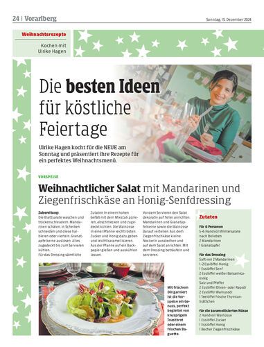 Weihnachtlicher Salat mit Mandarinen und Ziegenfrischkäse an Honig-Senfdressing