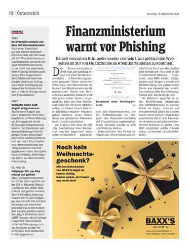 Derzeit versuchen Kriminelle wieder vermehrt, mit gefälschten Webseiten im Stil von FinanzOnline an Kreditkartendaten zu kommen.