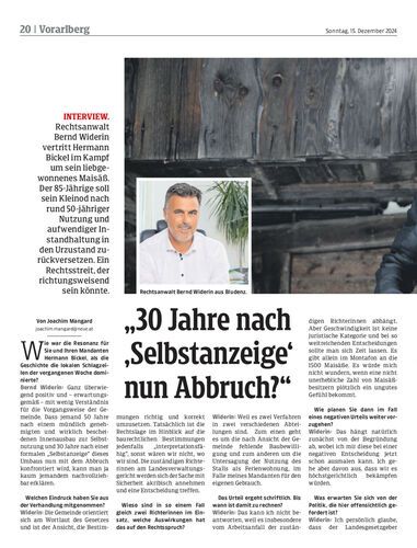 Interview. Rechtsanwalt Bernd Widerin vertritt Hermann Bickel im Kampf um sein liebgewonnenes Maisäß. Der 85-Jährige soll sein Kleinod nach rund 50-jähriger Nutzung und aufwendiger Instandhaltung in den Urzustand zurückversetzen. Ein Rechtsstreit, der richtungsweisend sein könnte.