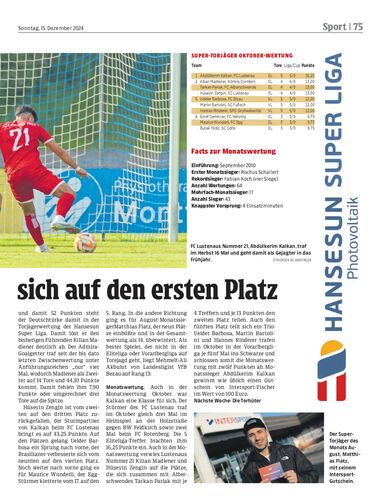 Abdülkerim Kalkan hat nicht nur die Monatswertung Oktober gewonnen, der Torjäger in Diensten des FC Lustenau geht auch als Winterkönig in die Pause.