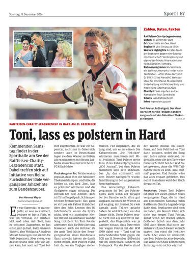 Kommenden Samstag findet in der Sporthalle am See der Raiffeisen-Charity-Legendencup statt. Dabei treffen sich auf Initiative von Heinz Fuchsbichler Idole vergangener Jahrzehnte zum Bandenzauber.