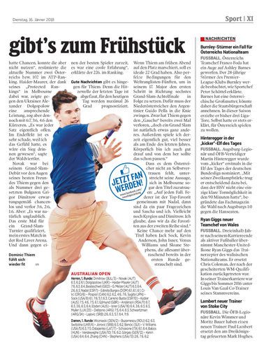 Gerald Melzer, Dennis Novak und Andreas Haider-Maurer haben sich gleich zum Melbourne-Auftakt wieder verabschiedet. Dominic Thiem ist heute Früh gegen Guido Pella dran.