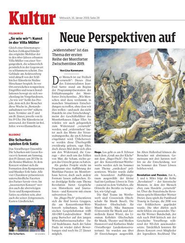 „widerstehen“ ist das Thema der ersten Reihe der Montforter Zwischentöne 2019.
