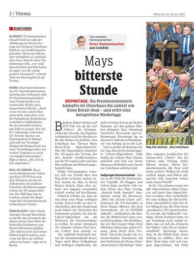 REPORTAGE. Die Premierministerin kämpfte im Unterhaus bis zuletzt um ihren Brexit-Deal – und erlitt eine beispiellose Niederlage.