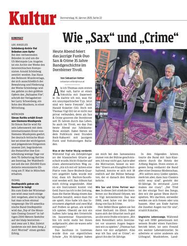 Heute Abend feiert das jazzige Funk-Duo Sax & Crime 35 Jahre Bandgeschichte im Dornbirner Tivoli.