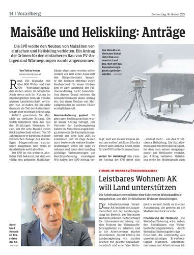 Die SPÖ wollte den Neubau von Maisäßen vereinfachen und Heliskiing verbieten. Ein Antrag der Grünen für den einfacheren Bau von PV-Anlagen und Wärmepumpen wurde angenommen.