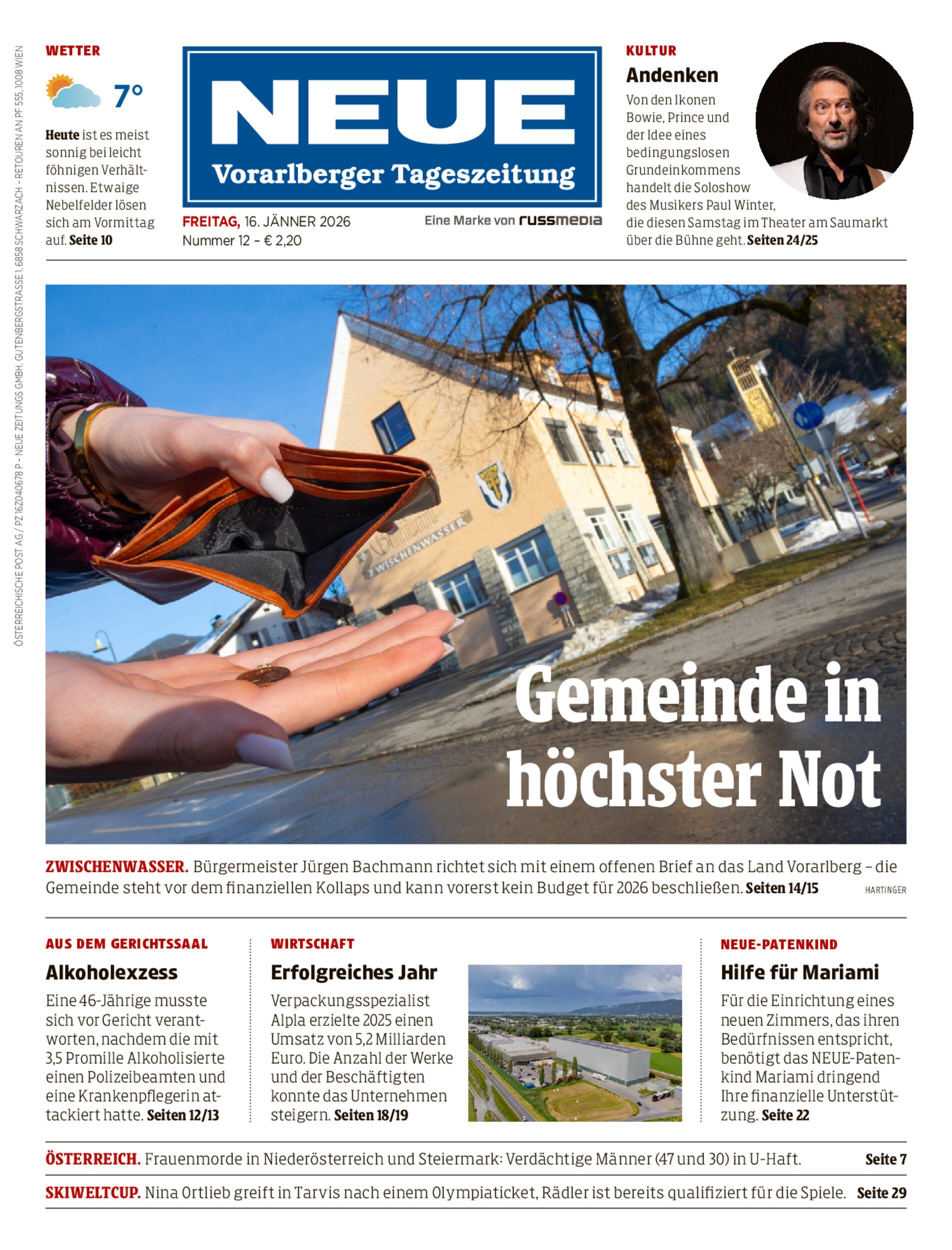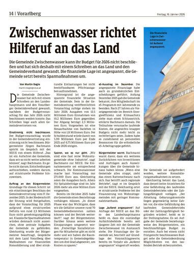 Die Gemeinde Zwischenwasser kann ihr Budget für 2026 nicht beschließen und hat sich deshalb mit einem Schreiben an das Land und den Gemeindeverband gewandt. Die finanzielle Lage ist angespannt, die Gemeinde setzt bereits Sparmaßnahmen um.