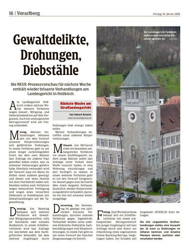 Die NEUE-Prozessvorschau für nächste Woche enthält wieder brisante Verhandlungen am Landesgericht in Feldkirch.