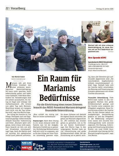 Für die Einrichtung eines neuen Zimmers braucht das NEUE-Patenkind Mariami dringend finanzielle Unterstützung.