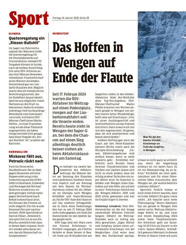 Seit 17. Februar 2024 warten die ÖSV-Abfahrer im Weltcup auf einen Podestplatz, morgen auf der Lauberhornabfahrt soll die Unserie enden. Bereits heute steht in Wengen der Super-G an, bei dem die Chancen auf einen Sieg allerdings deutlich besser stehen als beim Abfahrtsklassiker am Samstag.