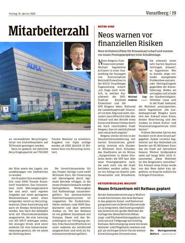 Neos kritisieren Pläne für Kinoankauf scharf und warnen vor neuen Prestigeprojekten trotz Schuldenlage.