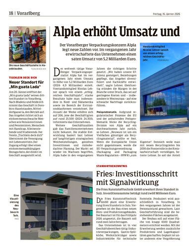 Der Vorarlberger Verpackungskonzern Alpla legt neue Zahlen vor. Im vergangenen Jahr erwirtschaftete das Unternehmen einen saten Umsatz von 5,2 Milliarden Euro.