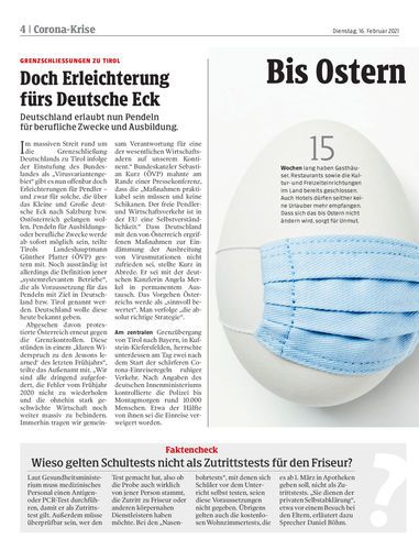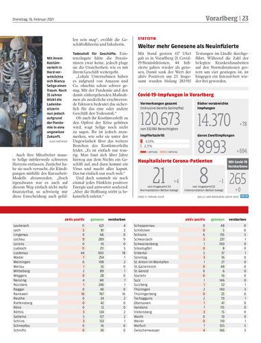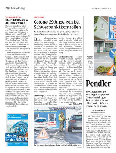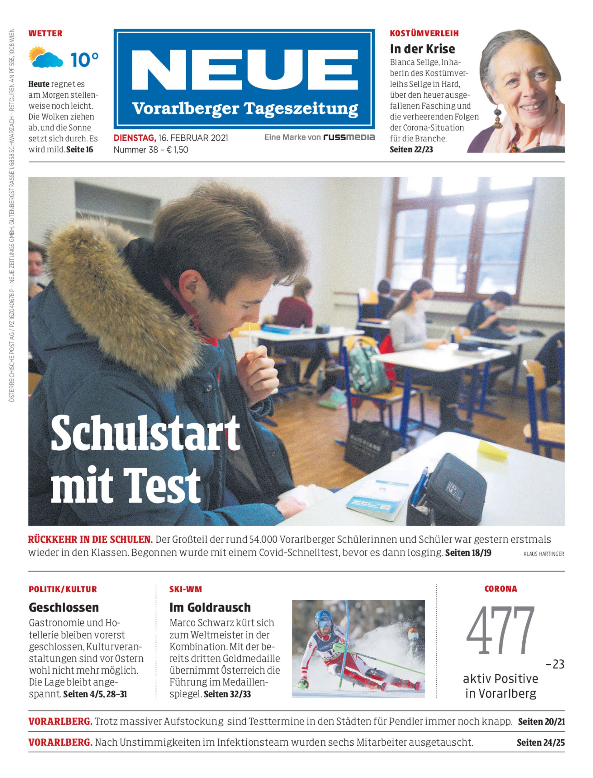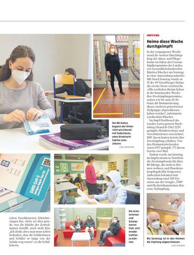 Rückkehr in die Schulen. Der Großteil der rund 54.000 Vorarlberger Schülerinnen und Schüler war gestern erstmals wieder in den Klassen. Begonnen wurde mit einem Covid-Schnelltest, bevor es dann losging. Seiten 18/19 Klaus Hartinger