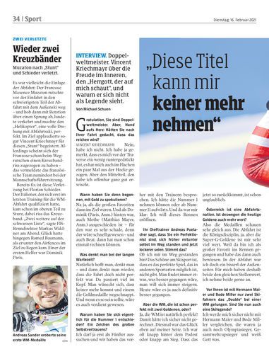 INTERVIEW. Doppelweltmeister. Vincent Kriechmayr über die Freude im Inneren, den „Herrgott, der auf mich schaut“, und warum er sich nicht als Legende sieht. Von Michael Schuen