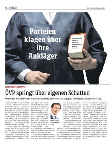 ÖVP-Chef Kurz spricht sich für Schaffung eines unabhängigen Bundesstaatsanwalts aus.