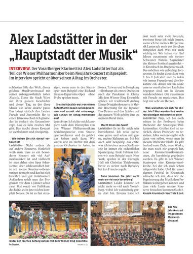 Interview. Der Vorarlberger Klarinettist Alex Ladstätter hat als Teil der Wiener Philharmoniker beim Neujahrskonzert mitgespielt. Im Interview spricht er über seinen Alltag im Orchester.