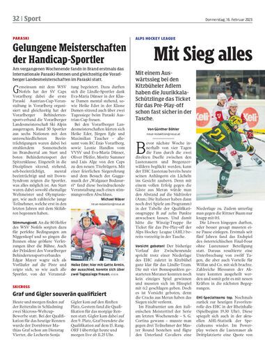 Am vergangenen Wochenende fandn in Brand erstmals das Internationale Paraski-Rennen und gleichzeitig die Vorarlberger Landesmeisterschaften im Paraski statt.