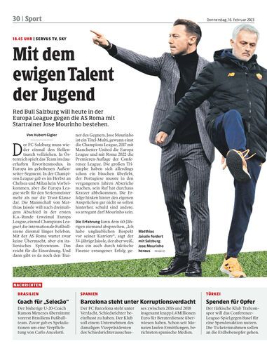 Red Bull Salzburg will heute in der Europa League gegen die AS Roma mit Startrainer Jose Mourinho bestehen.