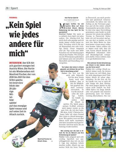 Interview. Der SCR Altach gastiert morgen bei Austria Wien. Die Partie ist ein Wiedersehen mit Manfred Fischer, der von 2018 bis 2021 für den SCRA spielte. Im Interview blickt der 28-jährige Mittelfeldspieler auf das morgige Spiel voraus und auf seine Zeit in Altach zurück.