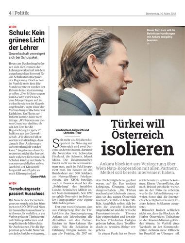 Ankara blockiert aus Verärgerung über Wien Nato-Kooperation mit allen Partnern. Merkel soll bereits interveniert haben.