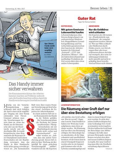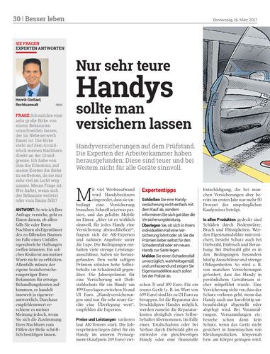 Die Konsumentenschützer der Arbeiterkammer machen auf Probleme aufmerksam, die Kunden beachten sollten, damit die Handyversicherung im Ernstfall auch zahlt.
