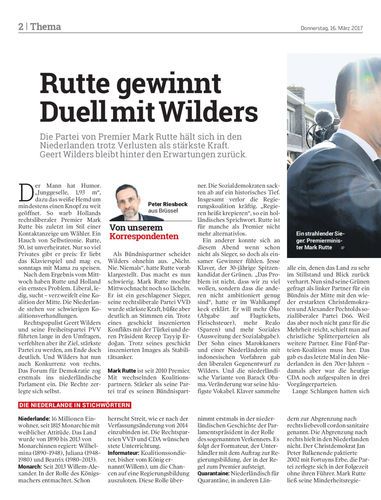 Die Partei von Premier Mark Rutte hält sich in den Niederlanden trotz Verlusten als stärkste Kraft. Geert Wilders bleibt hinter den Erwartungen zurück.