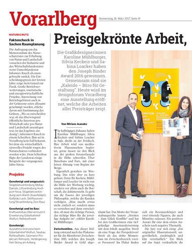 Die Grafikdesignerinnen Karoline Mühlburger, Silvia Keckeis und Sabina Loacker haben den Joseph Binder Award 2016 gewonnen. Gemeinsam sind sie „Kaleido – Büro für Gestaltung“. Heute wird im designforum Vorarlberg eine Ausstellung eröffnet, welche die Arbeiten aller Preisträger zeigt.