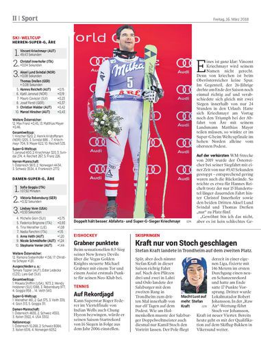 Vincent Kriechmayr siegte in Åre innerhalb von 24 Stunden zwei Mal, Kjetil Jansrud und Tina Weirather holten die Super-G-Kugeln.