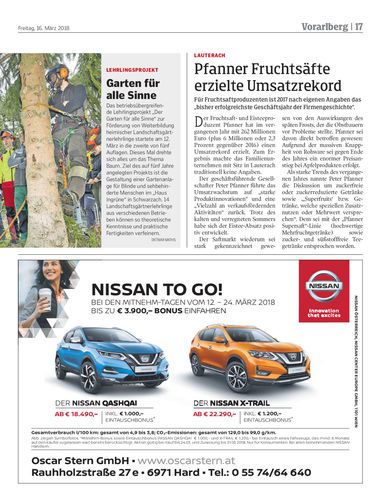 Pfanner Fruchtsäfte erzielte Umsatzrekord